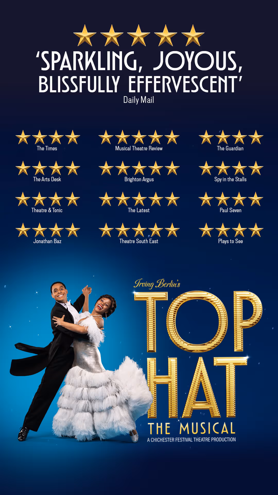 You’re invited to the musical equivalent of the finest vintage champagne: a stage adaptation of the classic 1935 Hollywood film, featuring sparkling music and dancing.